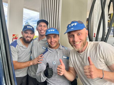 Am nächsten Morgen tankten wir, zum Dank, dass wir hier übernachten durften, noch auf und Max bekam endlich sein lang ersehntes YPF-Merch, welches die freundlichen Mitarbeiter der Tankstelle ihm sogar schenkten.